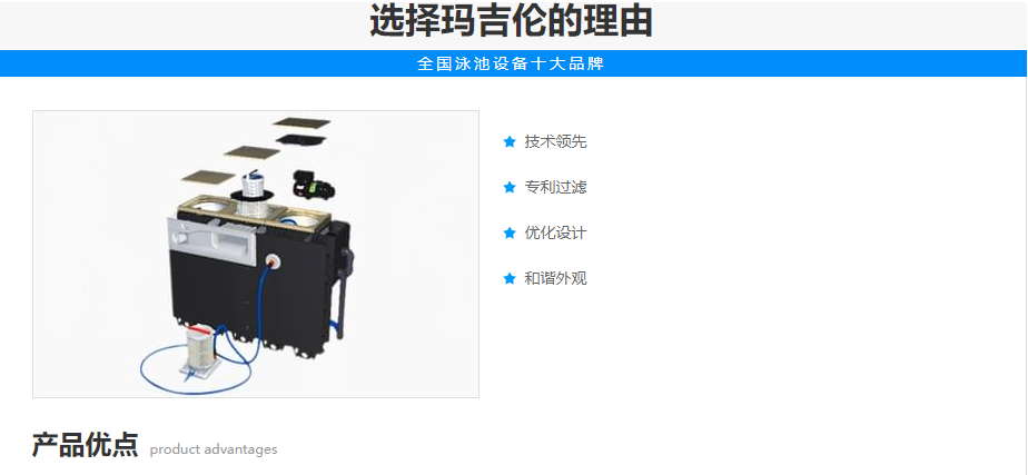 法国原装进口-玛吉伦窗口式设备,以简单实用的系统多用于空间狭小的泳池,与传统壁挂式泳池过滤设备相比,它具有以下四大优势: